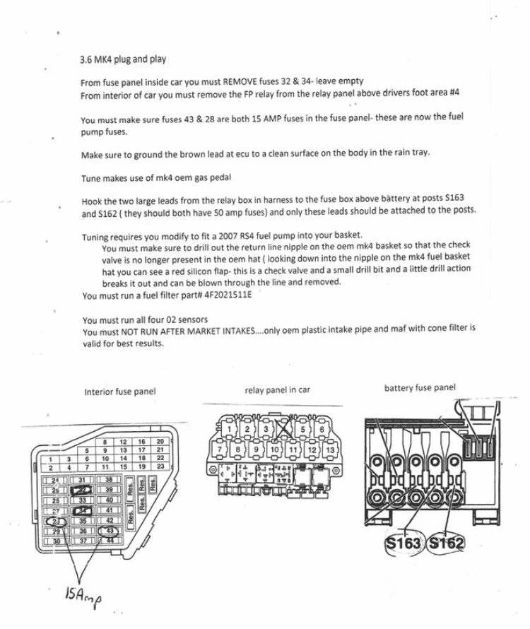 this harness will not work with mk2 lift pump/external pump setups!!!! you must run a mk3 gas tank or a single in tank pump!!!!! Must use 2007 RS4 fuel pump in tank